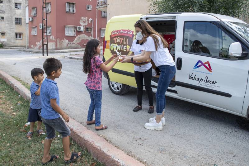Mersin Büyükşehir Belediyesi Sosyal Hizmetler Dairesi, bu yaz yeni bir sosyal proje başlattı. Havaların ısınmasıyla çocuklara dondurma dağıtımına başlayan Büyükşehir, üzerinde “Vahap Amca’yla Tatlı Günler” yazılı araçlarla kentin dezavantajlı ve kırsal mahallelerini dolaşıyor.
