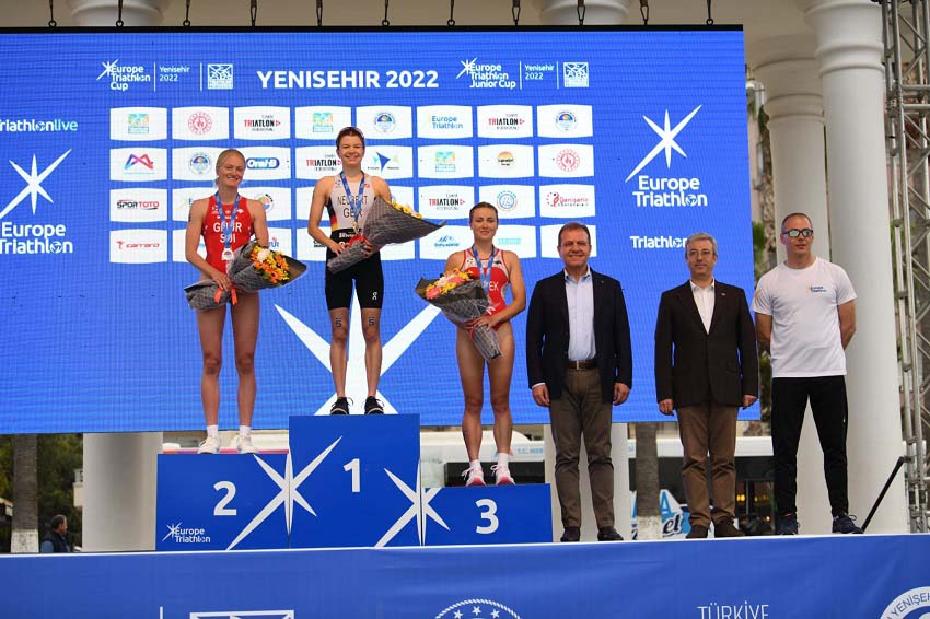 2022 Yenişehir Avrupa Triatlon Kupası elit kadınlar ve elit erkeklerde dereceye giren sporcular için madalya töreni düzenlendi. Mersin Büyükşehir Belediye Başkanı Vahap Seçer, CHP Mersin Milletvekili Alpay Antmen, Yenişehir Belediye Başkanı Abdullah Özyiğit, Türkiye Triatlon Federasyonu Başkanı Bayram Yalçınkaya ve Avrupa Triatlon Birliği Temsilcisi Zeljko Bujik başarılı sporculara madalyalarını verdi.
