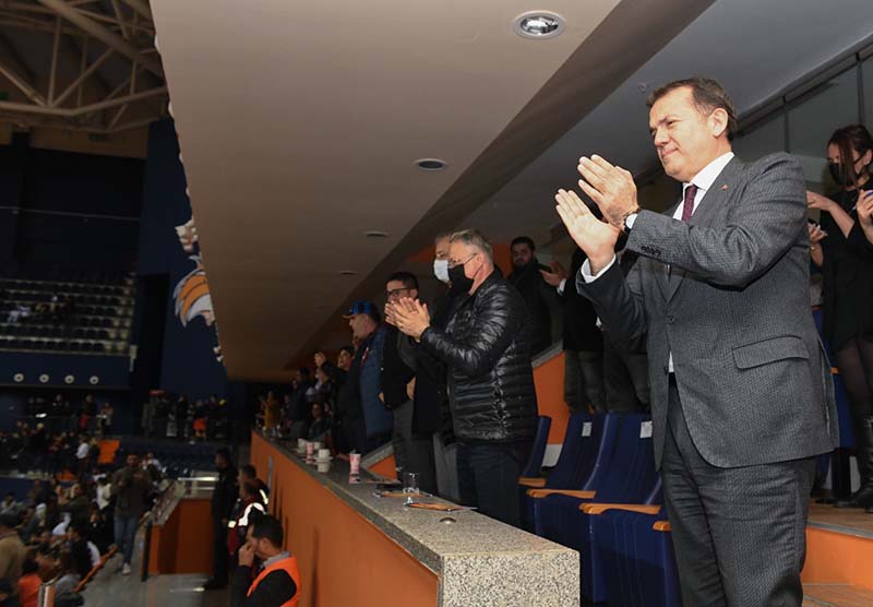 Maçı binlerce basketbolseverle izleyen Başkan Özyiğit, “ Taraftarımızın büyük desteği ile muhteşem bir oyun sergileyen takımımız tarihi bir başarıya imza attı.” dedi.