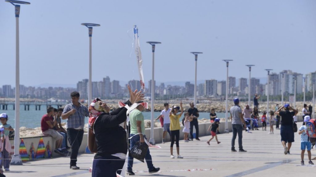 Ilık ve rüzgârlı havadan faydalanarak uçurtmalarını gökyüzüne salan çocuklar eğlenceli dakikalar geçirdi. Anne babalar da uçurtma uçurarak çocuklarının heyecanına ortak oldu.