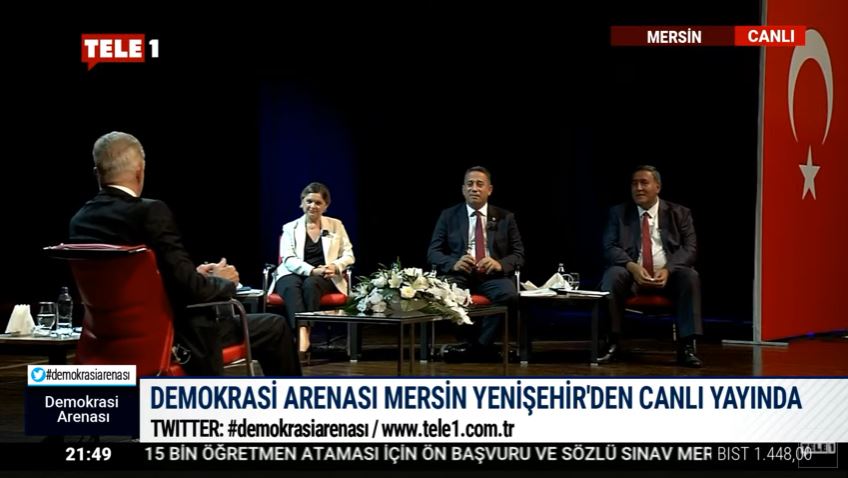 Mersin Yenişehir Atatürk Kültür Merkezi’nden canlı yayınlanan Demokrasi Arenası’nda, “Türkiye gerçekten büyüdü mü?”, “Vatandaş, hükümetin açıkladığı rakamlara neden güvenmiyor?” ve “128 milyar dolar unutuldu mu?” sorularına yanıt aranacak. Öte yandan programda, İzmir’in Kurtuluşu ve CHP’nin kuruluşunun 98. yıldönümü olan 9 Eylül tarihi dolayısıyla önemli açıklamalarda bulunuldu.