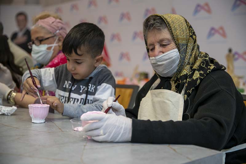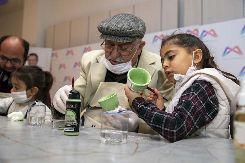 Farklı jenerasyonların bir araya getirildiği atölye çalışması, Büyükşehir Belediyesi Engelliler ve Sağlık Hizmetleri ile Kadın ve Aile Hizmetleri Dairesi ortaklığında Palm City AVM’de düzenlendi. Etkinlikte Yaşlı Destek Birimi’nden hizmet alan ve etkinliklerine katılan yaş almışlar ile Mevlana Kadın ve Çocuk Atölyesi’nde eğitim gören minikler bir araya geldi.